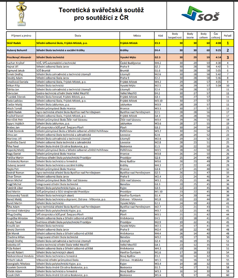Jakub Sigmund reprezentoval školu v metodě 311 (svařování kyslíko-acetylenovým plamenem). V této technicky mimořádně náročné disciplíně vybojoval v mezinárodní konkurenci vynikající 3. místo. Svůj talent potvrdil i v teoretické části, kde v rámci národního hodnocení (mezi soutěžícími z ČR) obsadil skvělé 6. místo.